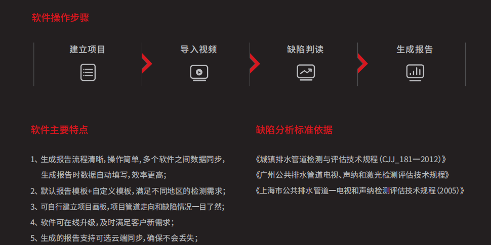 E30CHDW管道潜望镜是一种用于市政排水管道等有限空间的快速视频勘察设备,通过云台操作控制机头的俯仰,从而获得管道缺陷位置处的清晰图像信息。该设备操作方便,功能完善,具有高清成像、远距离观测、激光测距等功能,并可出具专业检测报告。