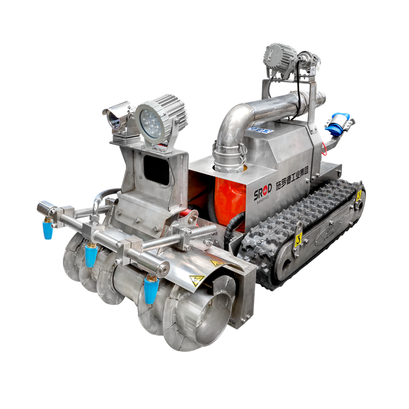 D800A 防爆清淤机器人:效率高吸污能力强、移动灵活可爬30度的坡、喷头设计便于抽吸、可进入DN800管径。